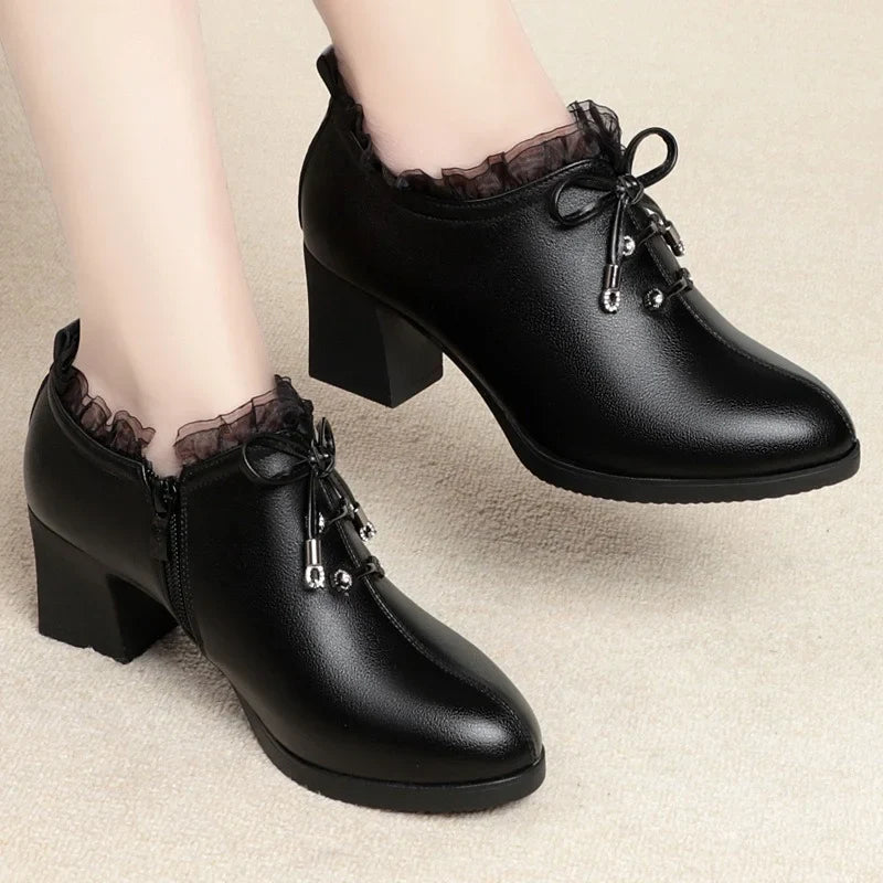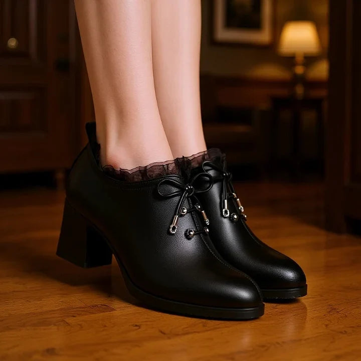 🎀Moteriški bateliai su raišteliais minkštu padu ir storu kulnu🎀