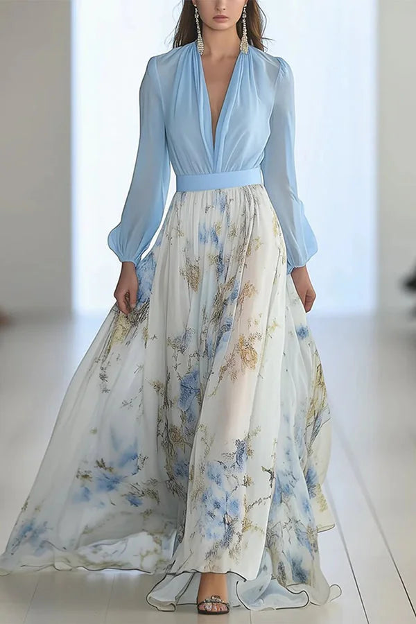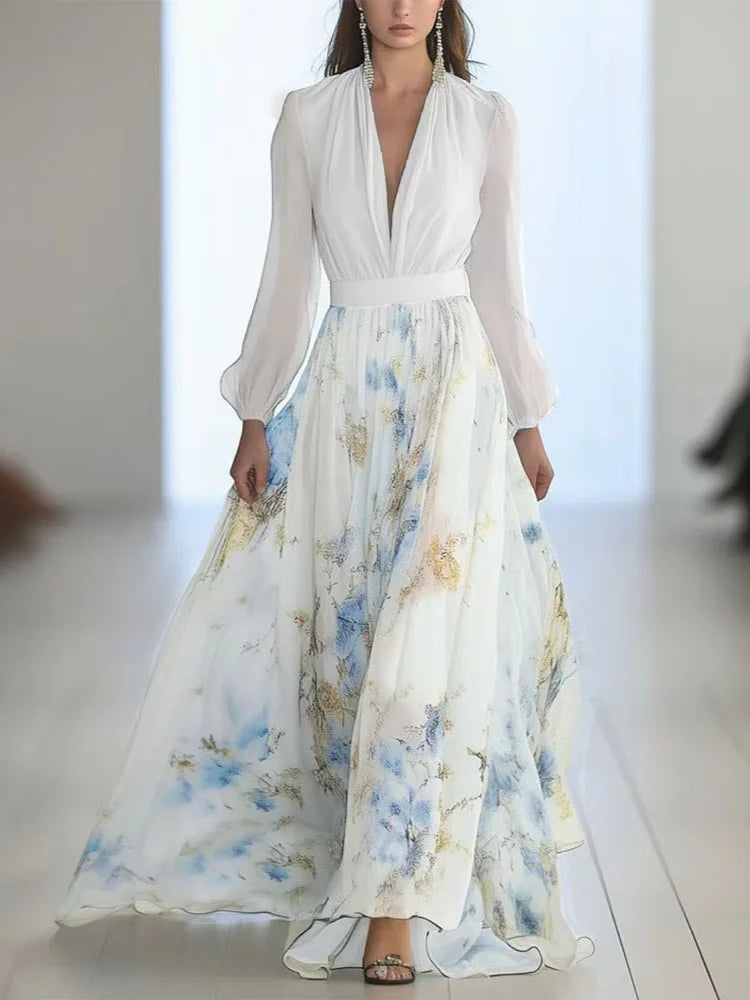 Elegantiška maksi suknelė su gėlių raštu