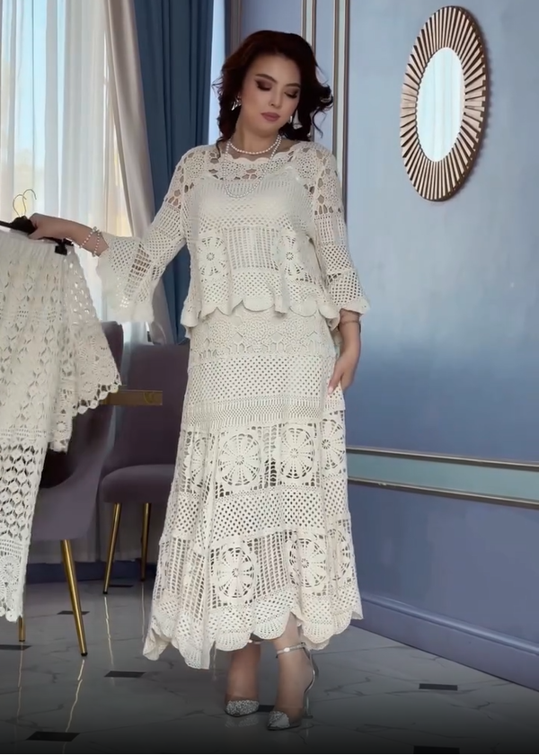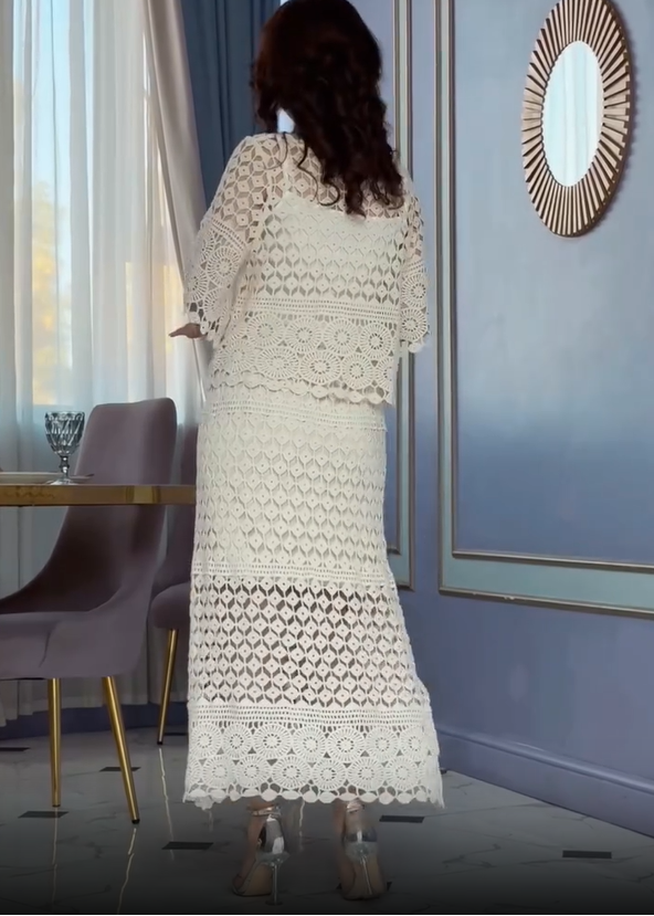 Moteriškas nėriniuotas dviejų dalių kostiumėlis